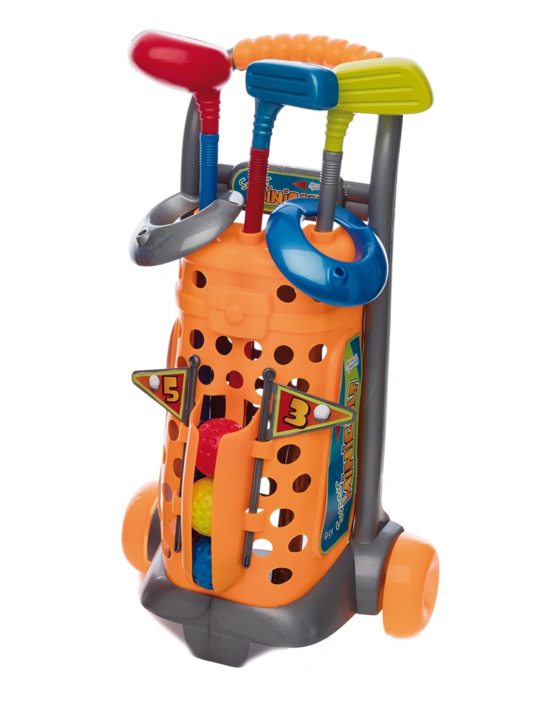 Carro de Mini Golf para niños, 10 piezas - Medida 57 cm - Material Plástico No Tóxico - Colores Surtidos - Recomendado A Partir de los 3 años